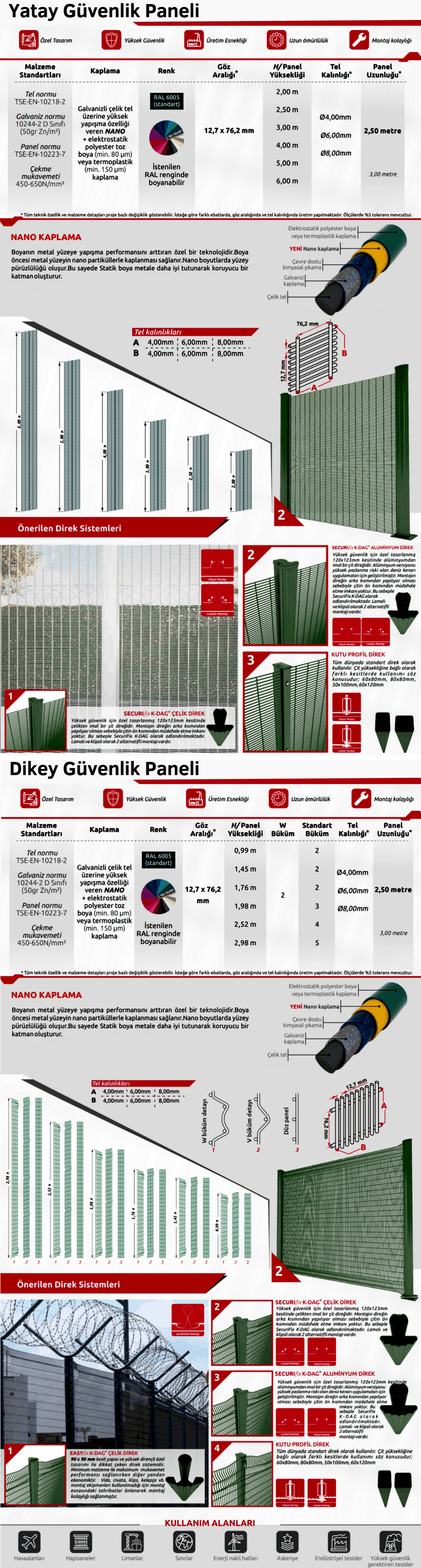 - Özelleştirilebilir Yapılandırmalar: Çeşitli yüksekliklerde, panel boyutlarında ve kaplamalarda mevcut olan Güvenlik Paneli sistemi, çeşitli ortamlar için esnek bir çözüm sağ ayarak belirli güvenlik gereksinimlerine uyacak şekilde özelleştirilebilir.